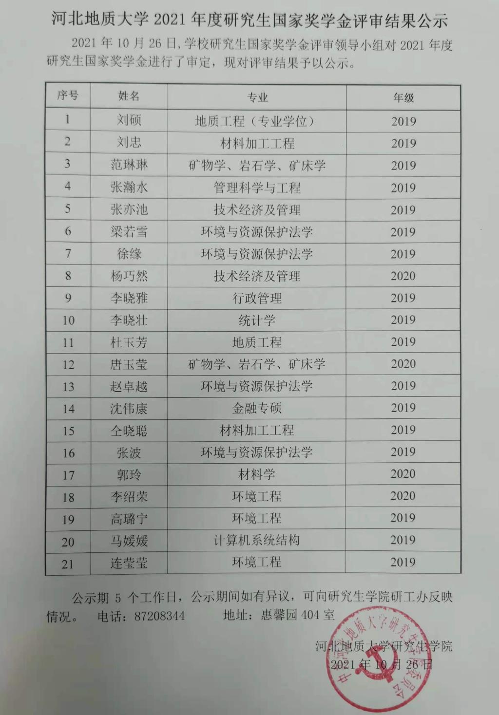 上一篇:河北地质大学2021年度研究生学业奖学金公示