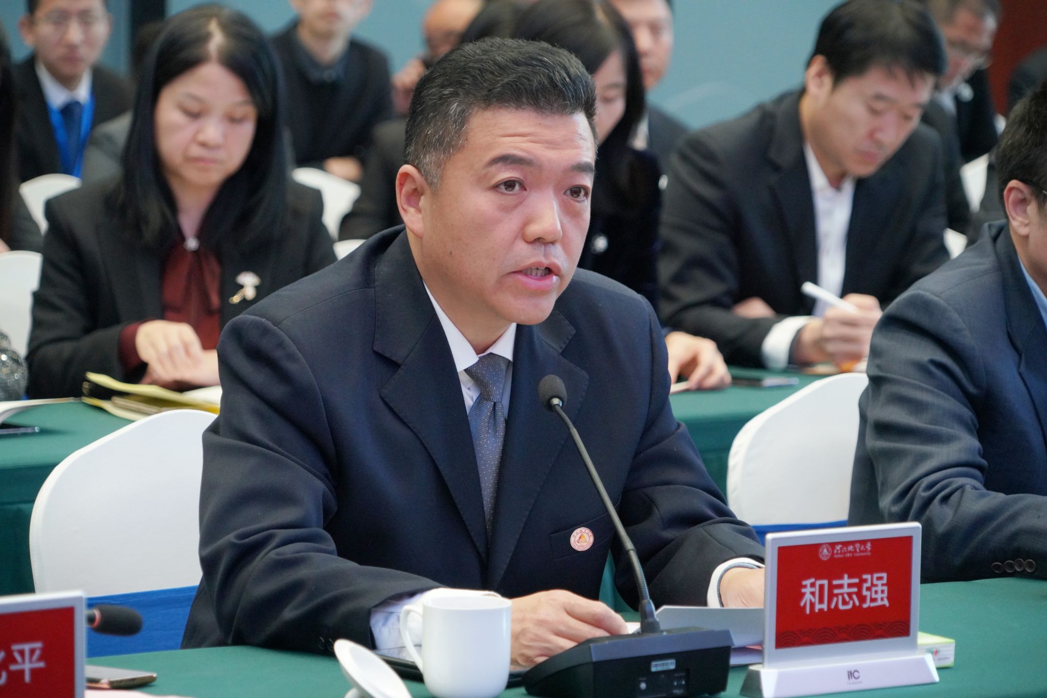 和志强代表学校作表态发言。他对专家组的辛勤工作和悉心指导表示衷心感谢。他表示,学校完全认同、诚恳接受专家组提出的意见建议,将照单全收、坚决整改。下一步,学校将以此次审核评估为新的起点,把整改落实作为当前和今后一个时期的重要任务,以钉钉子精神推动问题见底清零、工作提质增效,扎实做好审核评估“后半篇文章”。