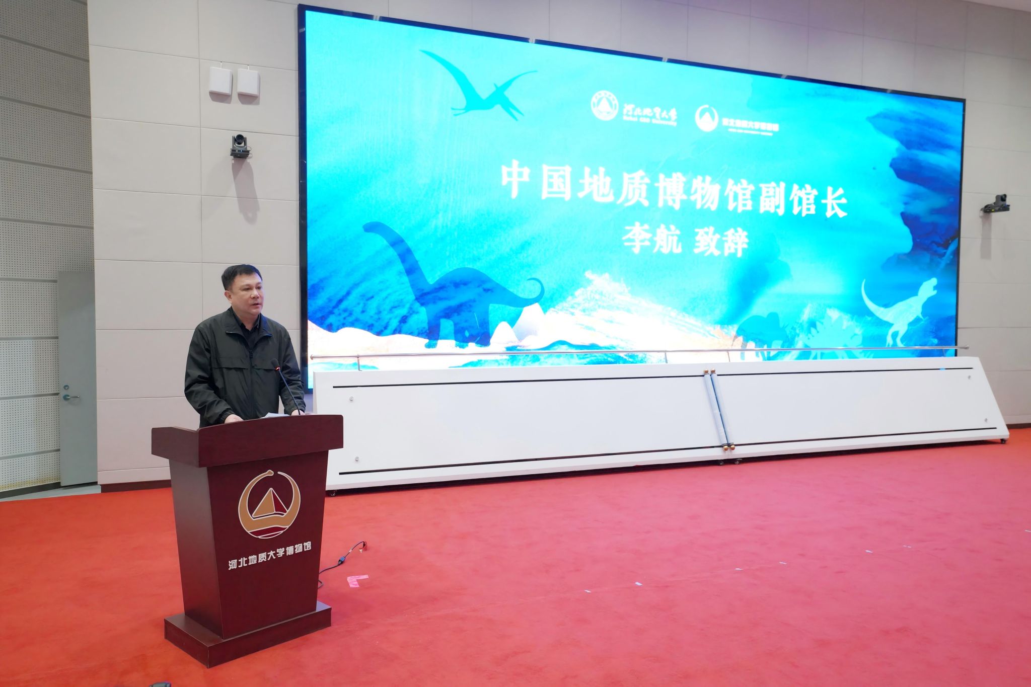 中国地质博物馆副馆长李航致辞,对新馆落成表达了祝贺与期待,希望河北地质大学博物馆成为馆校合作的典范、地学传播的窗口、精神传承的阵地,为推进文化强国、科技强国建设贡献地质力量。