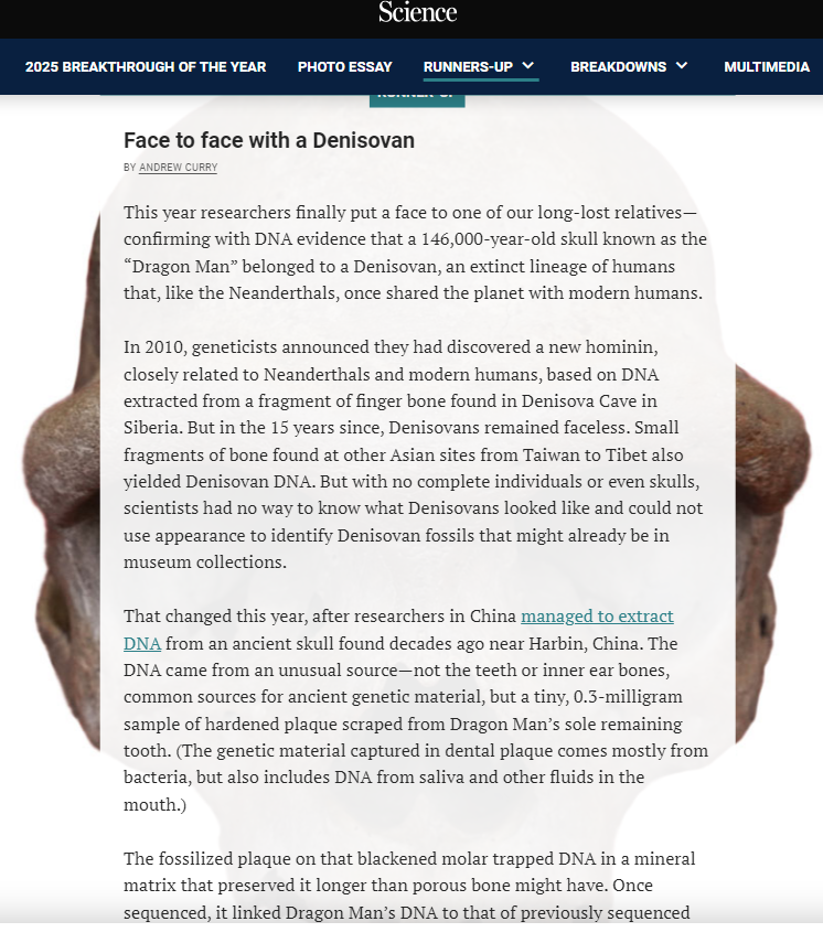 《科学》杂志关于龙人研究成果报道的原文