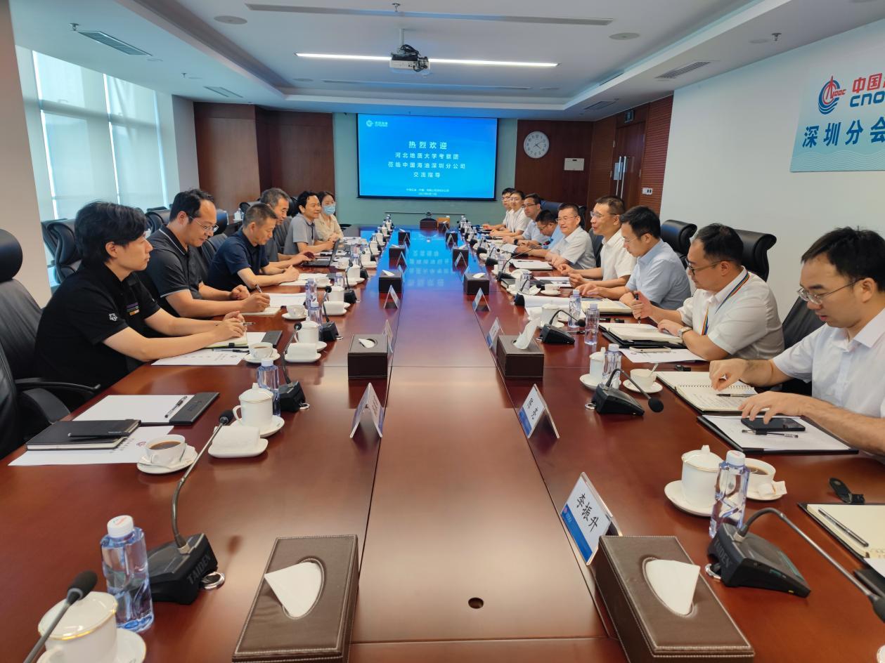 中海油深圳分公司勘探部经理林鹤鸣,勘探部副经理刘杰,南海东部石油研究院副院长张向涛,南海东部石油研究院地质总师彭光荣,南海东部石油研究院物探总师张卫卫等领导及部分项目负责人,以及我校驻深圳海油项目组成员师生参加座谈。