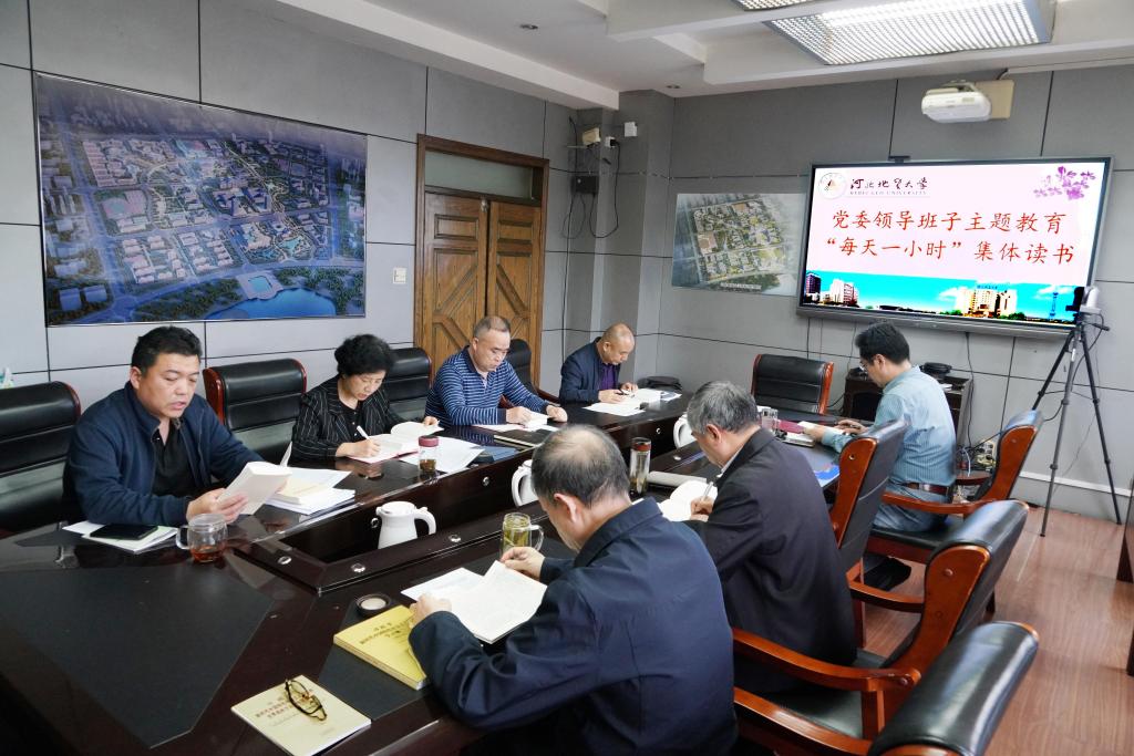 为扎实开展好我校学习贯彻习近平新时代中国特色社会主义思想主题教育读书班,5月4日下午,校党委领导班子在主楼三楼会议室举办主题教育读书班“每天一小时”集体读书会,带头开展理论学习,扎实有效推动主题教育走深走实。校党委副书记侯书文主持读书会,校长和志强带头领读,党委领导班子成员出席,副校长赵永强列席会议。