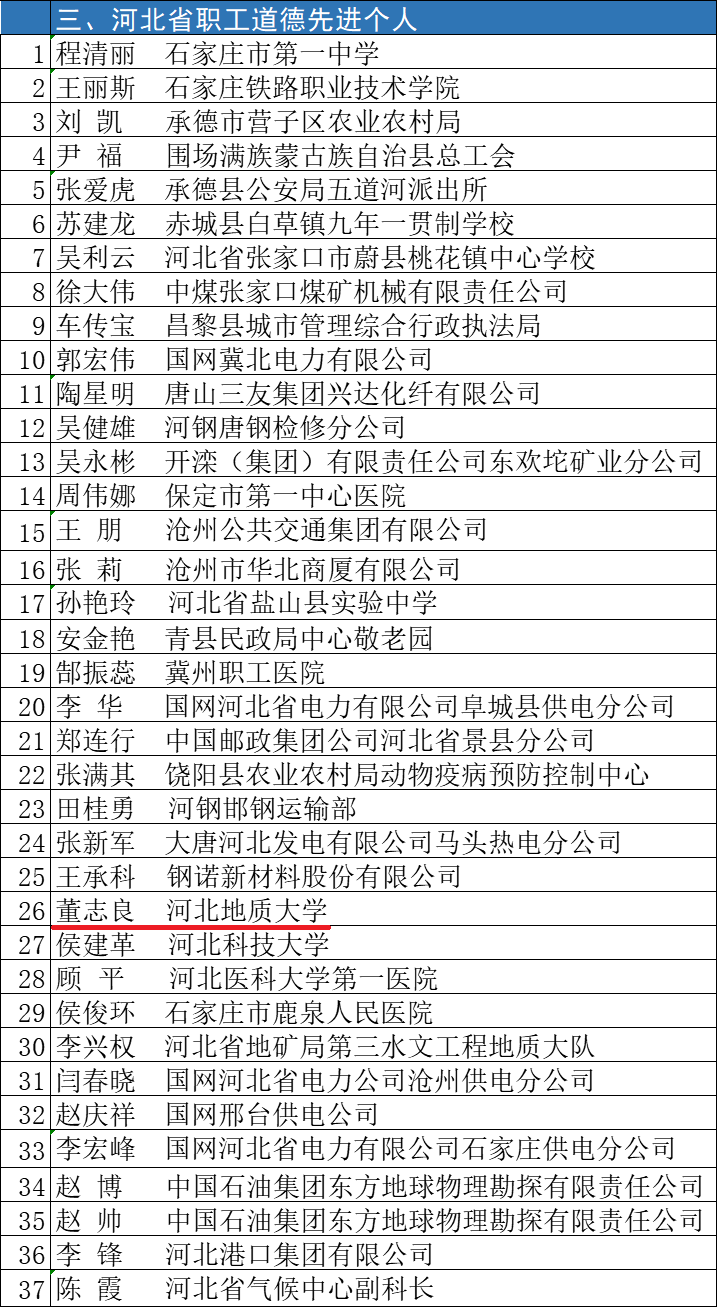 据悉,河北省总工会通过广泛发动、组织和社会推荐、网络点赞、专家推选,产生了一批道德品质高尚、社会贡献突出的职工和企业。恭喜我校董志良教授荣获“第七届河北省职工道德先进个人”称号。