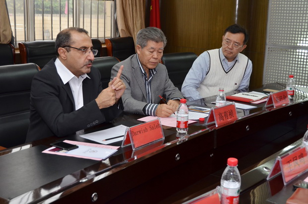会谈中,王凤鸣校长首先就学校的办学情况、相关学科专业特色作了全面介绍。他表示,卡塔尔是中东海湾地区有独特影响的重要国家,也是中国在该地区重要的合作伙伴,学校正在积极响应习近平总书记提出的“一带一路”倡议,愿意与卡塔尔在国际交流与合作、科研及产业合作等方面搭建广阔的合作平台,积极推动玄武岩纤维材料的发展,进一步提升我校国际合作的范围和水平。