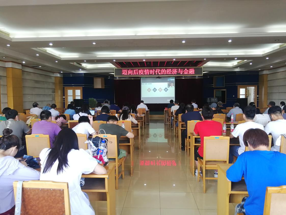 6月26日,全国金融专业硕士教学指导委员会委员与秘书长、中国人民大学博士生导师赵锡军教授应邀为我校师生作题为“迈向后疫情时代的经济与金融”的线上学术报告。副校长闫军印出席会议并致辞,冯校长冯鸿雁、研究生学院院长赵淑琴出席。报告会由经济学院院长牛建高主持,经济学院党委书记李国柱以及近120名师生聆听学术报告。