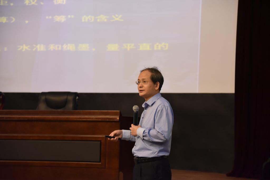 报告会由数理教学部主任曹南斌主持。周向宇院士以中国古代的“筹算”引入,展现了古人计数的方式,并论述了其暗含的“十进制”思想对数学发展的重大意义;提出先秦诸子“以数学命题阐述人文思想”的论点,介绍了孟子,墨子,荀子,管子,韩非子,老子等古代先贤的核心思想中所蕴含的数学命题;周向宇院士还通过对《周髀算经》《九章算术》《周易》等著作的介绍,讲解了“祖率”,“缀术”,“祖暅原理”,“割圆术”等方面的数学成果,最后以耳熟能详的“愚公移山”为例,论述了“愚公的数学思想”,探赜索隐,钩深致远,引起会场阵阵掌声。周向宇院士指出,中国古代的数学思想蕴含丰富,但易为人所忽略,探索中国古代的数学思想既是追根溯源的过程,也能为现代科学研究带来启迪。