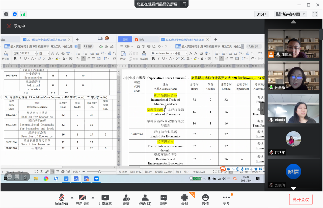 闫晶晶教授对比分析2016年和2020年人才培养方案修订情况