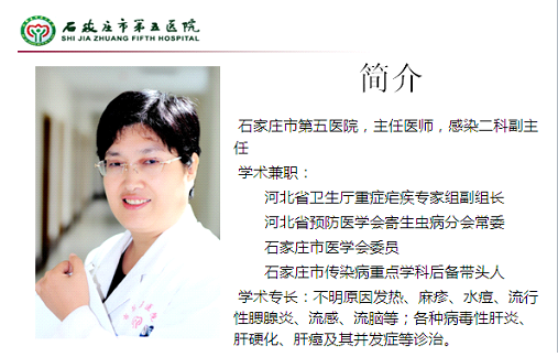袁文芳,石家庄第五医院主任医师,感染二科副主任。社会兼职:河北省卫生厅重症疟疾专家组副组长;河北省预防医学会寄生虫病分会常委;石家庄市医学会委员;石家庄市传染病重点学科后备带头人。对各种呼吸道传染病及并发症有丰富的临床经验。