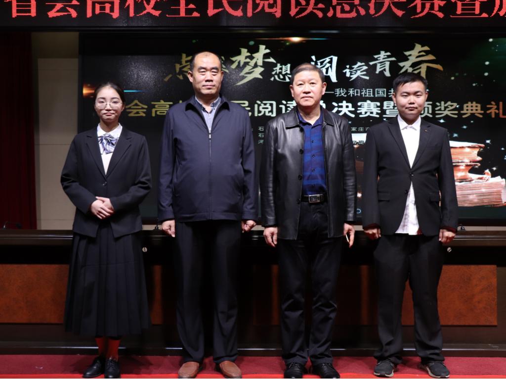 “全民阅读”是党中央、国务院建设学习型社会的重要部署。“点燃梦想,阅读青春——我和祖国共成长”——首届省会高校全民阅读系列活动就是石家庄市推进全民阅读的一个重要组成部分。此活动开展以来,我校广大同学积极参与,热情高涨。在24日的决赛中,省会高校共有10名选手参加,我校王耀泽、凌诗梦两位同学经过紧张激烈的比赛,最终获得优秀奖。另外我校还收获一名阅读推广达人(张芮静)殊荣和大赛唯一一项团体奖:高校最佳组织奖,并接受活动组委会授予的“省会高校青年阅读示范基地”的授牌。