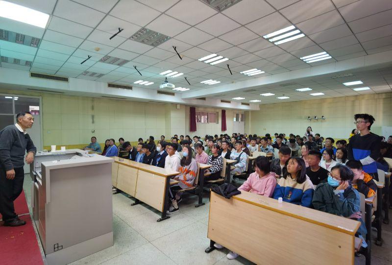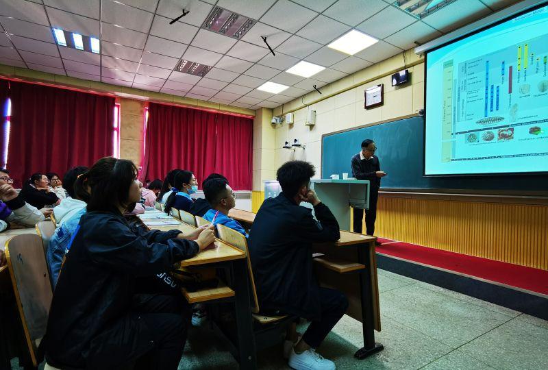 应河北地质大学地球科学学院邀请,2020年10月22日下午,国家古生物专家委员会副主任、德国洪堡学者、我校特聘教授、古生物研究院首席科学家季强教授为地球科学学院2020级全体新生讲解了一堂以“古生物学与地球科学”为主题的新生导论课。课上季强教授以“鸟类的起源”为先导,进而深入浅出地介绍了古生物学与地球科学的学科关系,古生物学中的基本概念、研究内容及研究意义,古生物与化石的异同及联系等专业问题,不仅为新生概要性地介绍了在校四年专业学习的内容与过程,同时积极引导了学生对专业学习热情与兴趣。“十年磨一剑,三剑定乾坤”不仅让学生了解到学术所需要的刻苦钻研与脚踏实地,同时也寄托了季强老师对学生们的殷切期待。课程最后,季强教授与听课学生以提问答疑的形式进行了互动。季老师的精彩演讲与学术魅力赢得了学生阵阵掌声。