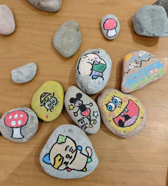作为地学特色院校,师生对岩石肌理尤为熟悉。本次活动特别设置了“石上绘”创意体验环节。结合岩石天然的纹理与气孔,参与者将其作为画布进行艺术创作。在巧思与画笔下,坚硬的石块被赋予了全新的、更具美感的生命形态。