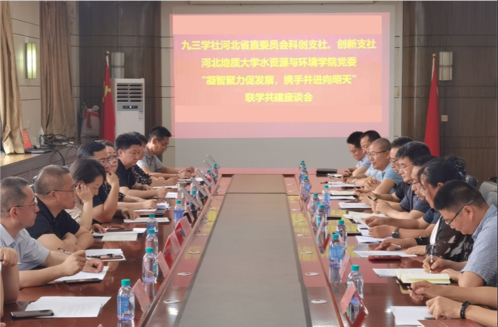 6月13日下午,我校水资源与环境学院党委与九三学社河北省直委员会科创支社、创新支社“凝智聚力促发展,携手并进向明天”联学共建座谈会在学校主楼四楼会议室举行。河北地质大学水资源与环境学院党委书记高峰,实验实践教学中心主任、九三学社河北地质大学基层委员会主委杨武岐;河北省政协委员、九三学社河北省委常委、九三学社河北省省直委员会副主委兼秘书长、河北省农林科学院农业资源环境研究所副所长孙世友出席本次联学共建座谈会。