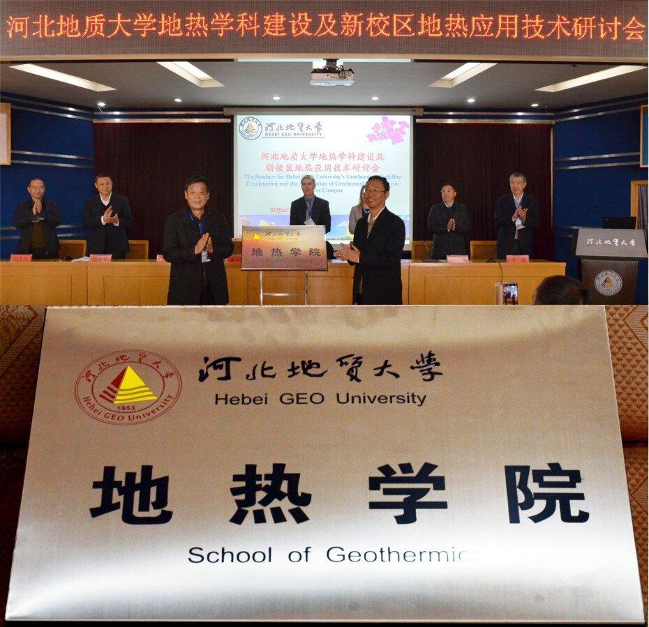 2017年11月1日,河北地质大学地热学院揭牌成立。院长于开宁创新发展理念和建设思路,以科技创新平台和团队建设为抓手,带领团队聚焦青藏高原高温构造型、华北平原中低温盆地型、长白山火山型三大不同类型的地热带;围绕教学科研、论文专著、专利标准、政产学研用以及成果转化等方面开展交流与合作,取得了系列成果和可喜进展。地热团队成员25名,其中教授5名、副教授12名;主要学术兼职有中国地热与温泉产业技术创新战略联盟副理事长、中国能源研究会地热能专业委员会委员、中国可再生能源学会地热能专业委员会委员、河北省岩石力学与工程学会地热专业委员会委员等。