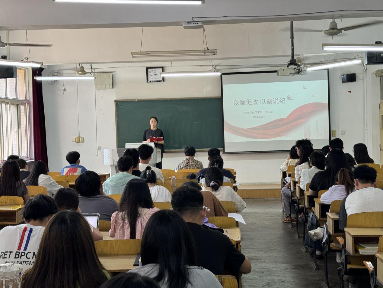 为深入学习贯彻修订后的《中国共产党纪律处分条例》,让党员干部受警醒、明底线、知敬畏,以严明的纪律确保全党自觉同以习近平同志为核心的党中央保持高度一致,统一思想、统一行动,进一步对党规党纪进行再学习、再深化、再领悟,做到学纪、知纪、明纪、守纪。2024年5月16日,经济学院学生第一党支部在教二306组织开展党纪学习教育。经济学院蔺丽军老师、郭晓娜老师及全体党员、入党积极分子参加。