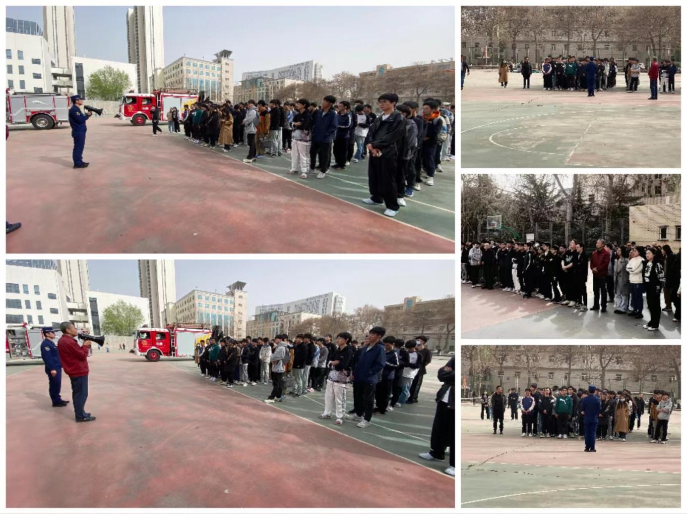 2024年3月28日下午2:50,刺耳的消防警报在河北地质大学校园回荡,学八楼迅速被烟雾笼罩,住宿在学八楼的学生成一路纵队,弯腰捂鼻,有条不紊的从各楼层在辅导员和宿舍管理员的引导下,迅速到学校网球场集结;学校微型消防站的队员全副武装,携带灭火设备迅速冲上发烟楼层;裕华区富强消防应急中队两辆消防车鸣着警笛迅速到达现场,展开应急救援;观摩的师生为精彩的环节纷纷鼓掌。这是河北地质大学2024年春季学期消防应急疏散演练活动的一个场景。