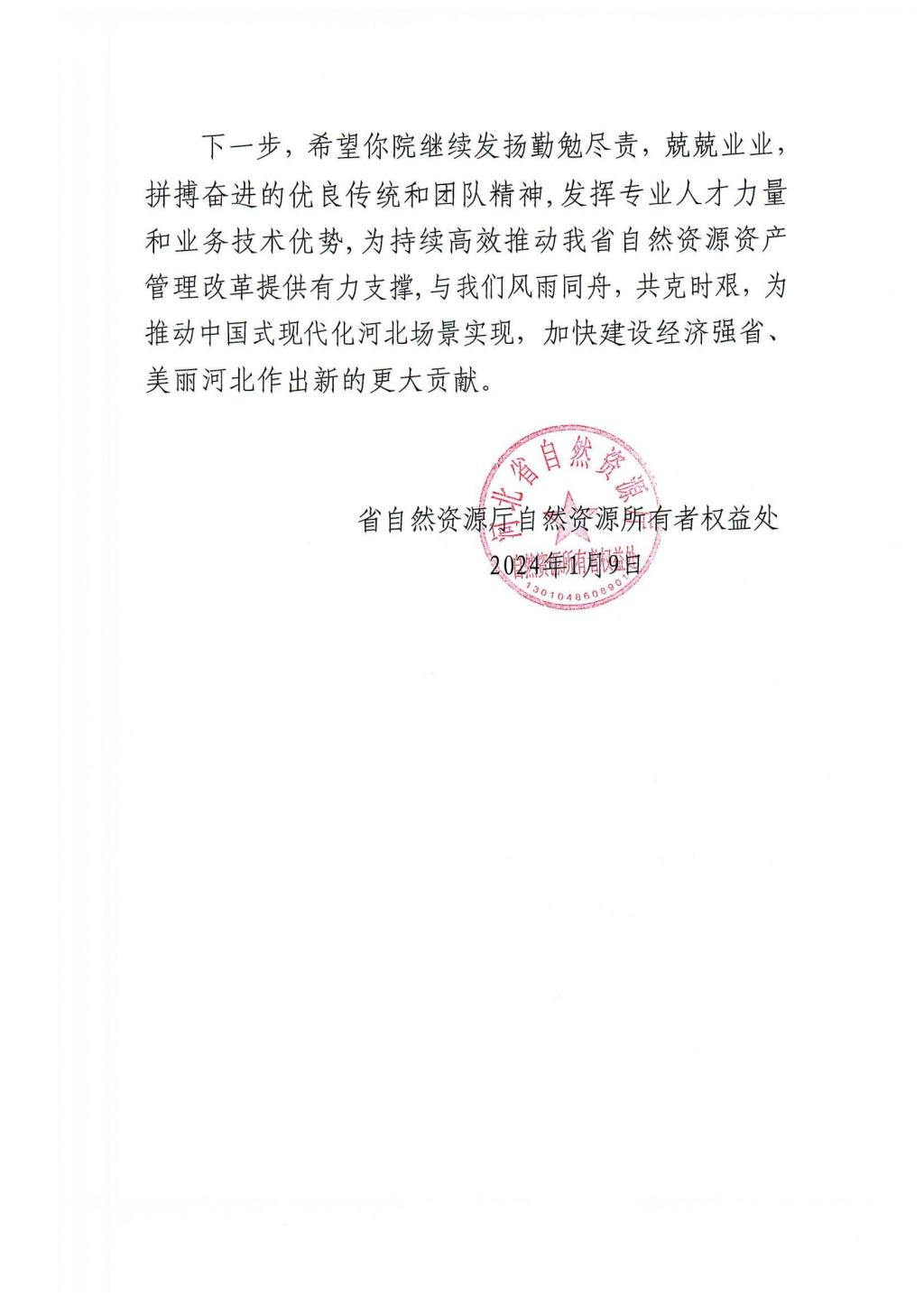 近日,河北省自然资源厅自然资源所有者权益处向我校发来感谢信,对我校土地科学与空间规划学院在委托代理机制试点工作中提供的技术支撑表示感谢。