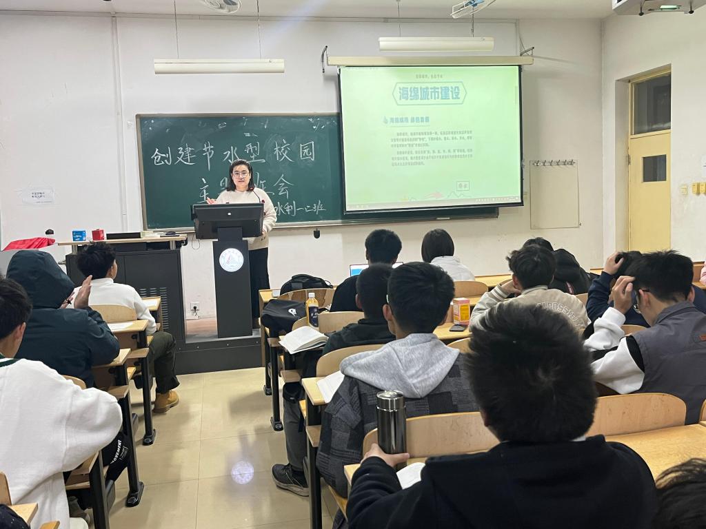 2023年11月26日星期日,付志静在北校区以学生社区为单位,借助无课的教室作为学生活动室,再次深入开展“创建节水型校园”主题班会。本次班会中,付老师首先总结了“节水型校园有我 请国家和社会放心”主题班会后,同学们在学生社区内的节约用水情况,肯定了大家把节水意识落实到了行动上,同时请同学们思考和讨论:建设节水型校园以及建设节水社区的可行性意见和看法。最终形成切实可行方案,如:在校园内学生社区进行宣传和温馨提示,以及到学校周边社区进行宣传等。