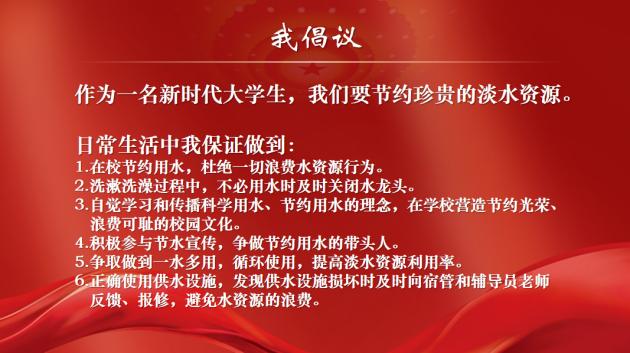 “创建节水型校园”主题班会后,每一位水环学子在学生社区生活中,主动担负起节水宣传的任务,广泛传播和科普日常节水常识,使每一位在校大学生意识到节约用水重要性并付诸实践,校园中节水风气浓厚,为“节水型校园建设”贡献力量。