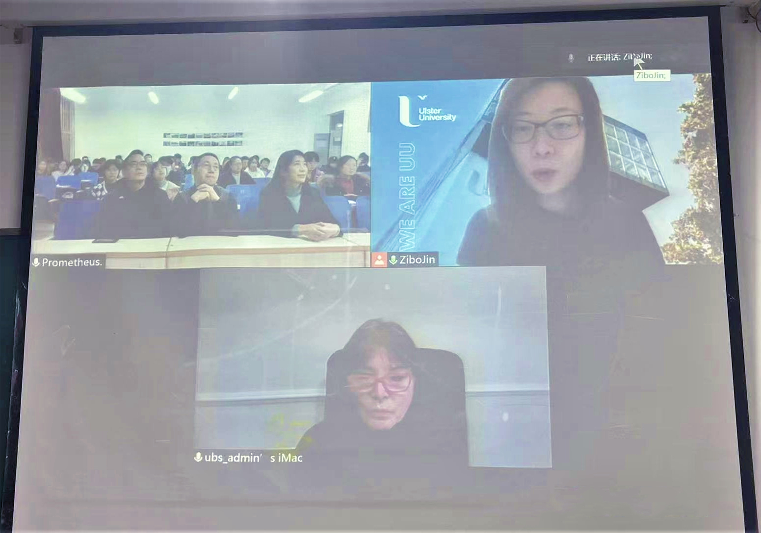 杰姬.麦考伊(Jackie McCoy)在致辞中,首先对因为疫情不能来河北地质大学参加见面会表示了遗憾,之后从厄尔斯特大学的历史沿革、学院现状、培养目标、培养方案、师资队伍、科研成果、合作交流、优势特色和就业前景等方面做了详细介绍。她衷心祝愿所有2021级学生今后能够在厄尔斯特大学中找准定位,发挥优势,成就梦想,走向成功。
