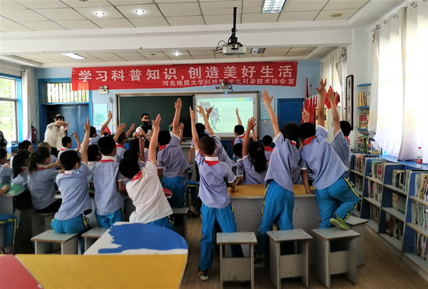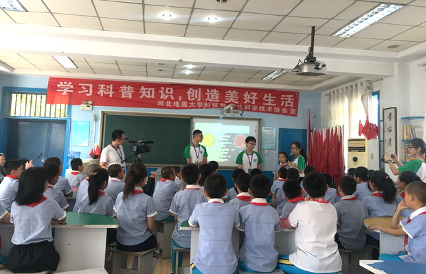 5月22日下午,为推动倡导科学普及从小做起,培养小学生对科学知识的兴趣爱好,结合我校特色专业,学生科协联合石家庄柏林庄小学开展了科技周“走进小学”科普活动,向小学生们普及地球、地理等科学知识。活动以科普小讲堂、科普电影院、科普有奖小问答、科普小实验等形式开展,吸引了众多小朋友的参与,活动中的积极互动更加深了对科普知识的理解;河北电视台少儿频道对本活动进行了全程报道。
