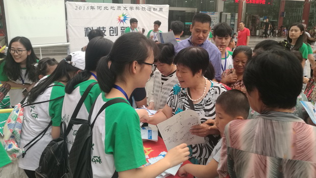 5月26日下午,以日常科普知识为切入点,学生科协前往石家庄高新区天然城社区开展科技周“走进社区”特色科普活动,向社区民众传播科普精神,宣传绿色生活方式,以推动营造良好的社区生活环境,共建绿色家园。活动通过科普展览、绿色科普小讲堂向现场人员讲解了生活中的绿色科普知识;同时,社区内设有科普有奖问答活动点,吸引了众多居民的参与,不时还有居民与工作人员进行问答讨论。最后,学生科协还为社区居民带来科普相声、独唱、古筝弹奏、电影放映等节目,丰富了活动内容。