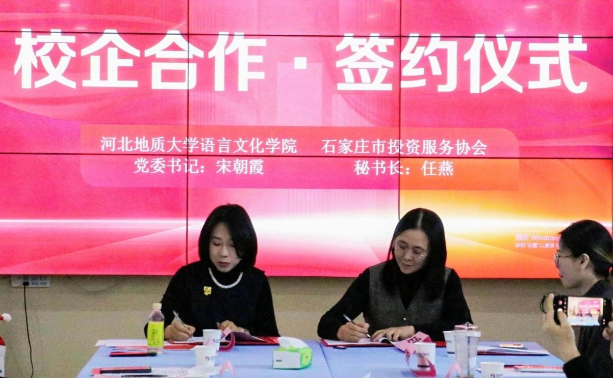 会上,宋朝霞围绕学院深化“语言+技能”复合型人才培养、产教融合新路径等内容发言,并代表学院与石家庄市投资服务协会签订了合作协议;陶沙代表学院与石牧药业共建实习基地举行授牌仪式,为学生实践就业、企业人才输送搭建了双向通道,产教融合与实践育人迈入新阶段。