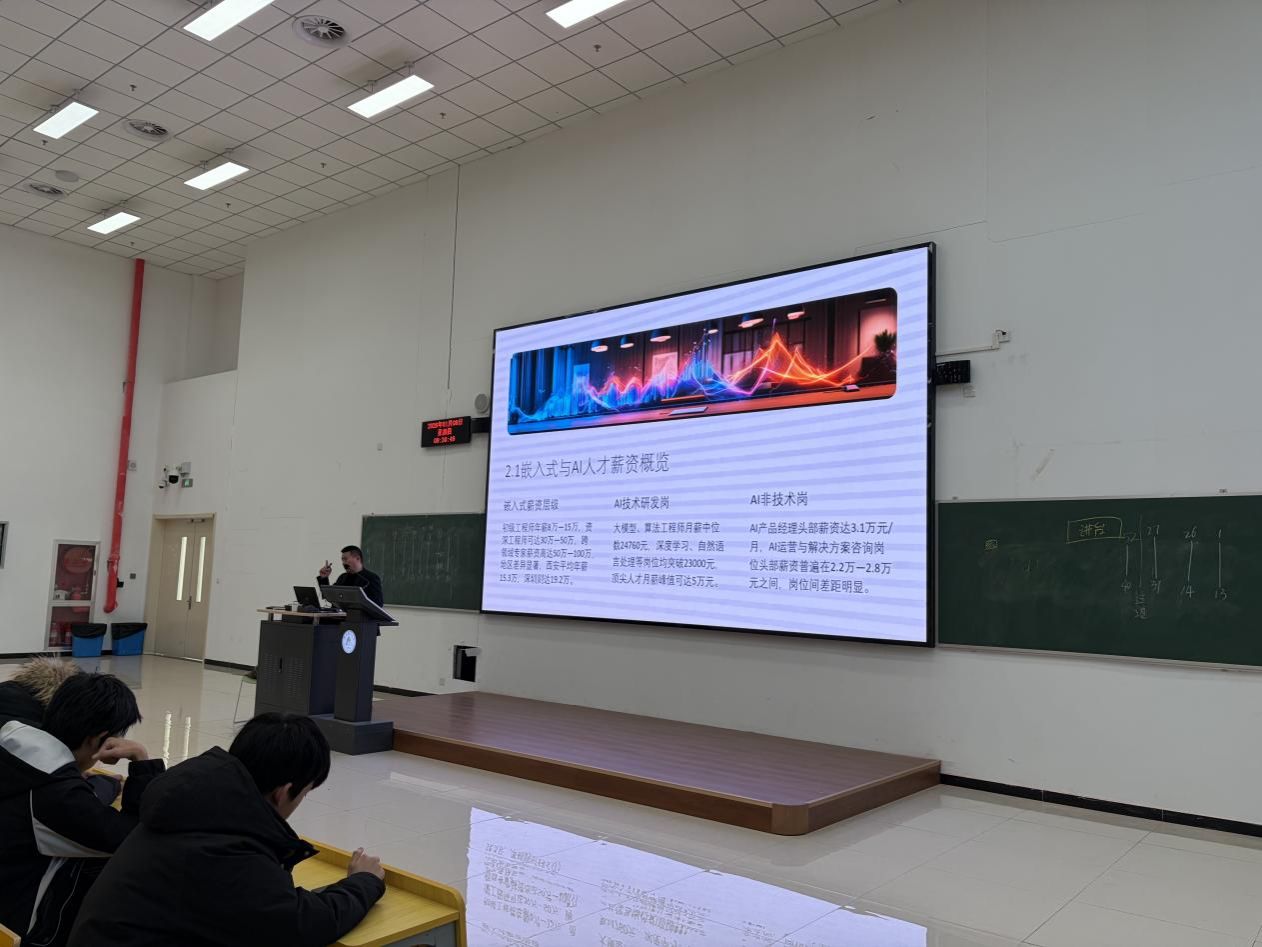 报告伊始,蒋大伟经理便点明嵌入式与人工智能融合是当下极具潜力的技术赛道,围绕该领域的行业发展前景展开深入剖析。他结合行业动态与技术演进规律,为同学们描绘了该领域的广阔发展空间,让大家对前沿技术的应用场景和未来走向有了更清晰的认知。