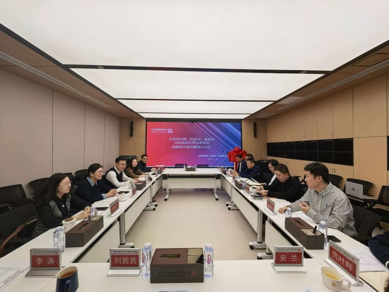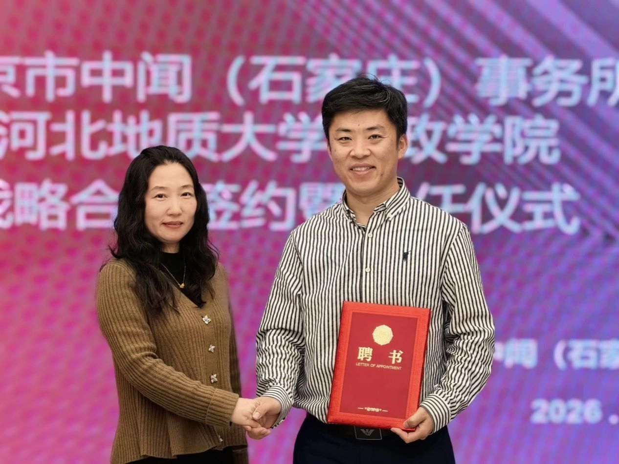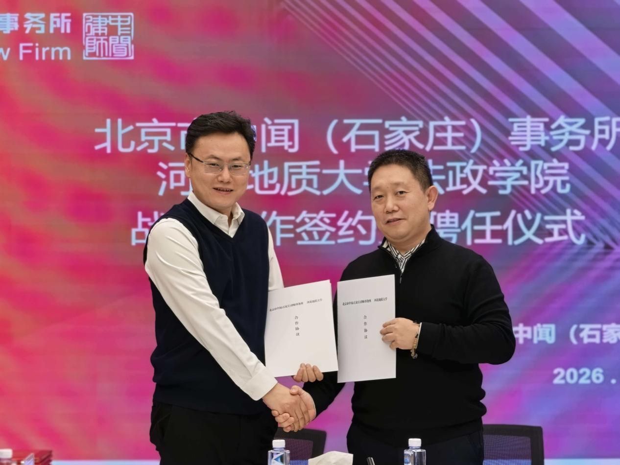 1月15日,河北地质大学法政学院与北京市中闻(石家庄)律师事务所战略合作签约暨聘任仪式在中闻石家庄办公室隆重举行。法政学院院长孙日华、副院长王丽慧、法学系主任葛丽明、实践教学中心主任韩建祥及师晓丹副教授出席仪式,石家庄市律师行业党委委员、市律师协会副会长张永泽律师应邀见证签约。
