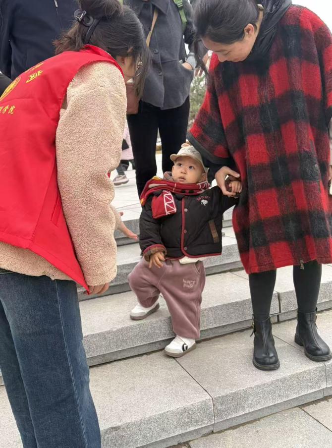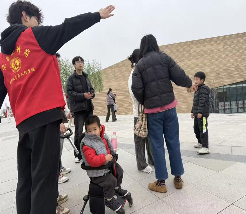 在校园博物馆入口处,志愿者们化身“活地图”与“服务员”:为行动不便者提供搀扶引导,为带婴家庭推行婴儿车,为游客拍摄纪念照、解答路线咨询。他们用耐心与细致化解游客的难题,用微笑与帮助传递城市温度,让“奉献、友爱、互助、进步”的志愿精神在细节中熠熠生辉。