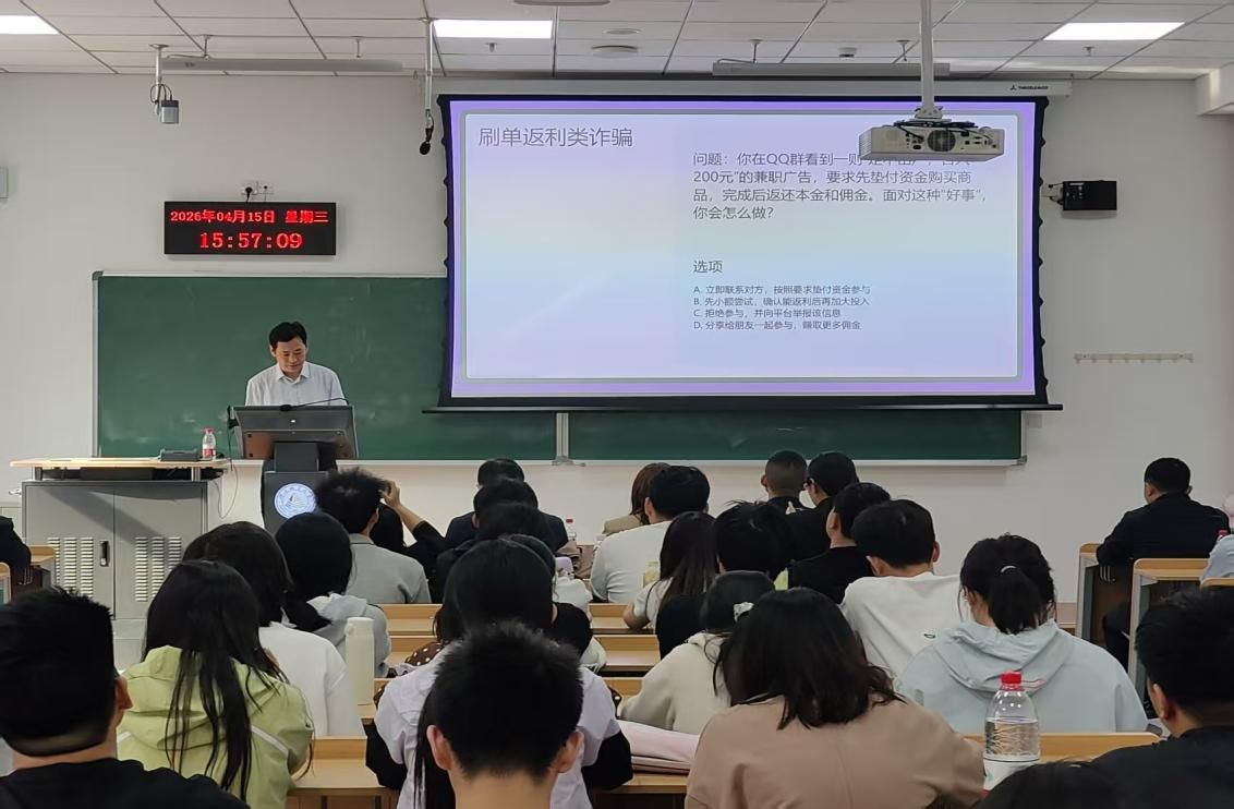 为切实提升校园反诈防范意识,守护师生财产安全,筑牢校园安全防线,以4月15日全民国家安全教育日为契机,河北省农业银行、石家庄市公安局反诈中心与河北地质大学财务处、法政学院联合开展“精准反诈校园行”专题讲座与反诈宣传活动。