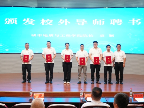 袁颖为高鹏岳、王成龙、孟淑培、王希吉、孙双振、张立辉颁发校外导师聘书