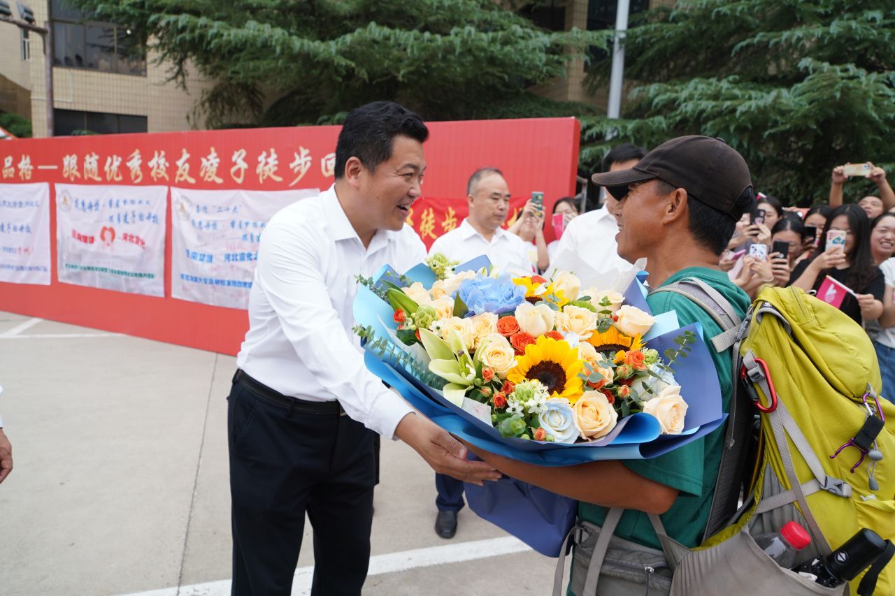 一路走来,凌子诠释了地质人“三光荣”“四特别”的地质精神,他用平凡朴素的方式,坚韧不拔的毅力和浓厚热烈的情怀,为河北地大师生上了一堂爱国爱校的“大思政课”,为河北地质大学献上了一份具有特殊纪念意义的校庆献礼。今日过后,凌子将继续前行的脚步,走向河北地质大学宣化旧址,继续用学子的赤诚回馈母校的培育之恩,用最简单的方式给予我们最不平凡的感动。衷心祝愿凌子未来的行程平安顺遂、如意圆满。