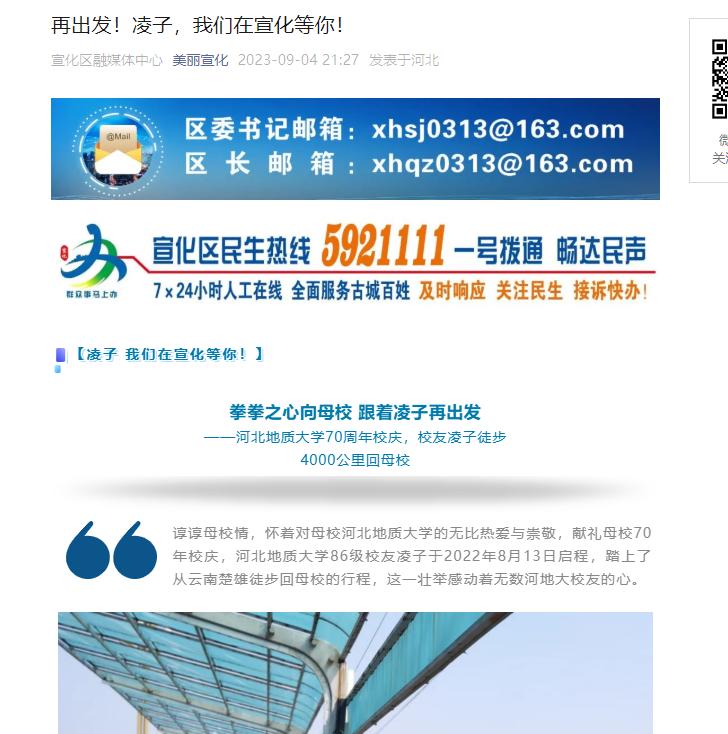 谆谆母校情,怀着对母校河北地质大学的无比热爱与崇敬,献礼母校70年校庆,河北地质大学86级校友凌子于2022年8月13日启程,踏上了从云南楚雄徒步回母校的行程,这一壮举感动着无数河地大校友的心。