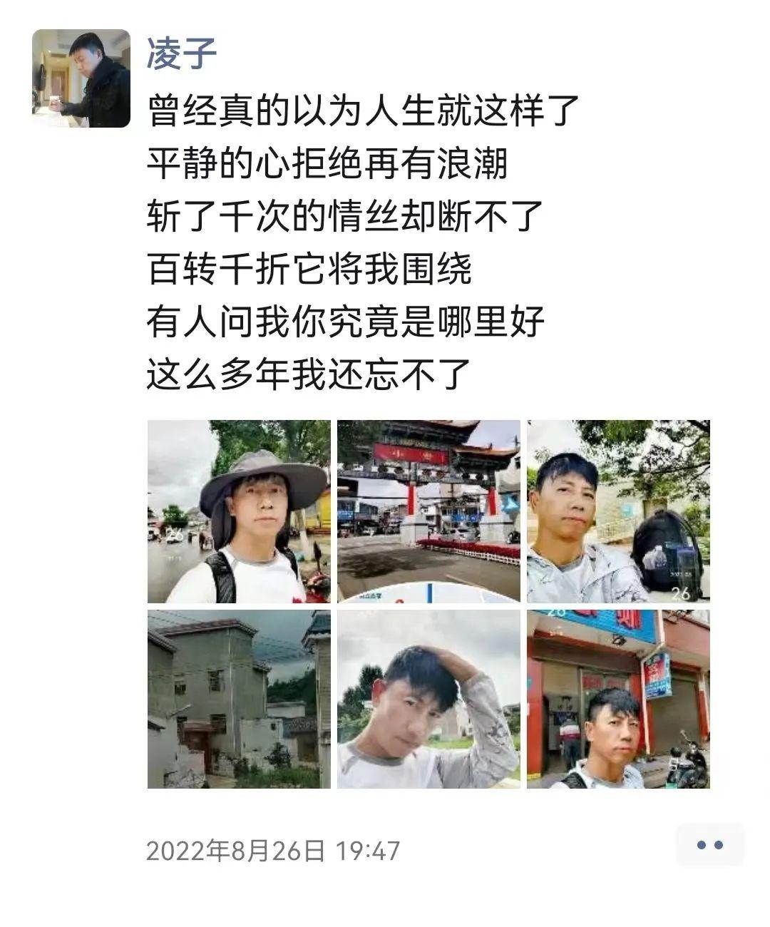 9月4日,在2013级校友莫谋勇的陪伴下,他们从沙子镇出发,目标光照镇,全程27公里。凌子说:“到达目的地后,师弟将返回广州。不管是同行,还是独行,我的想法始终不变。感谢一路遇到的朋友们,我们宣化见!”