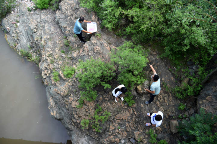 2022年7月25日,河北地质大学的老师带领学生进行野外地质实习。