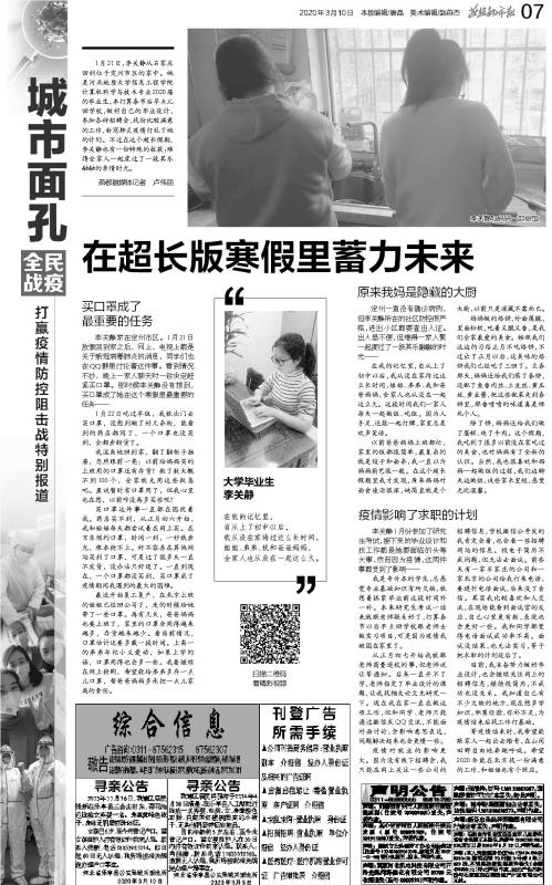 1月21日,李关静从石家庄回到位于定州市区的家中。她是河北地质大学信息工程学院计算机科学与技术专业2020届的毕业生,本打算春节后早点儿回学校,做好自己的毕业设计,参加各种招聘会,找份比较满意的工作,新冠肺炎疫情打乱了她的计划。不过在这个超长假期,李关静也有一份特殊的收获:难得全家人一起度过了一段其乐融融的亲情时光。