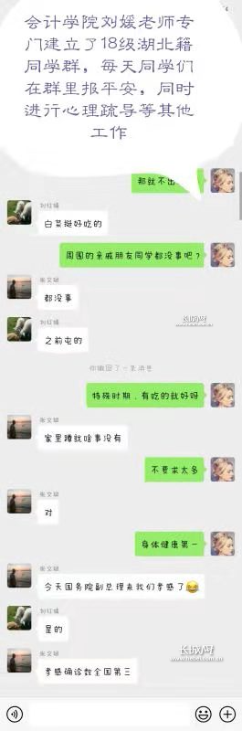 会计学院刘媛老师建立了湖北籍学生群,每天询问学生们的情况。
