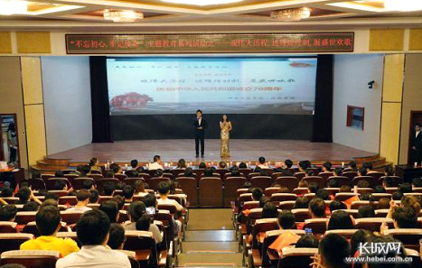 长城网讯 9月30日下午,河北地质大学法政学院与信息工程学院为迎接中华人民共和国成立70周年于春秋讲堂联合举办了“不忘初心,牢记使命”主题教育系列活动之观伟大历程,述辉煌时刻,展盛世欢歌。河北地质大学党委副书记南振兴、校宣传部、法政学院与信息工程学院党政领导、教职员工代表和学生代表参加了此次活动。