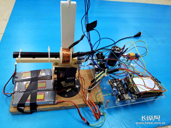 河北地质大学参赛项目作品——模拟电磁曲射炮。通讯员/供图