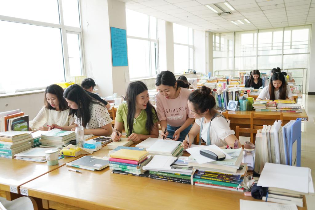河北地质大学资源学院眷六-5-402宿舍成员在图书馆自习。河北地质大学/供图