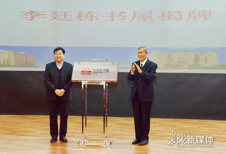 当天,还举行了李廷栋书屋揭牌仪式,李廷栋把多年珍藏的近万册图书和地质图册捐赠给学校,其中不乏绝版外文书籍。侯增谦代表中国地质科学院地质研究所向李廷栋书屋捐赠了图书。
