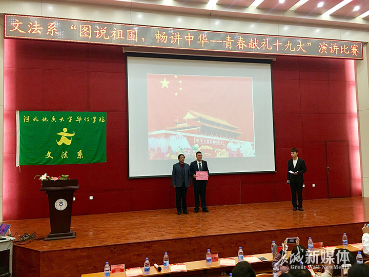 长城新媒体11月25日讯(记者 刘延丽 通讯员 张晓腾)近日,河北地质大学华信学院文法系举办了“图说祖国 畅讲中华—青春献礼十九大”演讲比赛。法学1班的高圣源同学以优异成绩摘得桂冠。