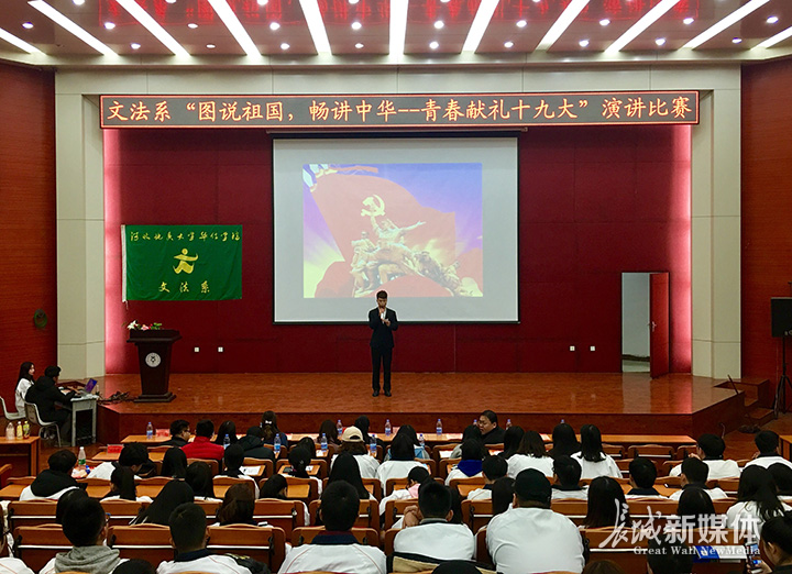 河北地质大学华信学院文法系举办了“图说祖国 畅讲中华—青春献礼十九大”演讲比赛。孙健兴 摄