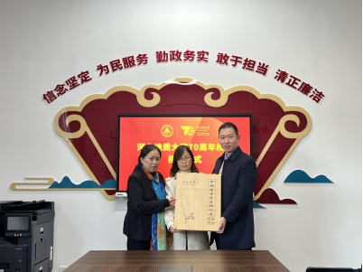 11月18日,正值我校建校70周年校庆日,李廷栋院士通过李晓华女士向我校捐赠珍贵潜龙化石一块,国有资产管理处处长伦关臣、副处长马旭萍出席捐赠仪式。