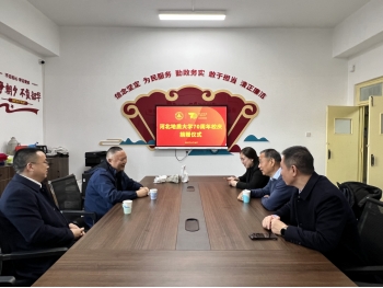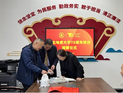 为庆祝母校70年校庆,四川校友会于11月18日在主楼412向母校捐赠四块珍贵岩石标本,四川校友会会长谢良福、张健作为代表携标本出席。我校教育发展基金会理事长许俊、国有资产管理处处长伦关臣和副处长马旭萍出席捐赠仪式。