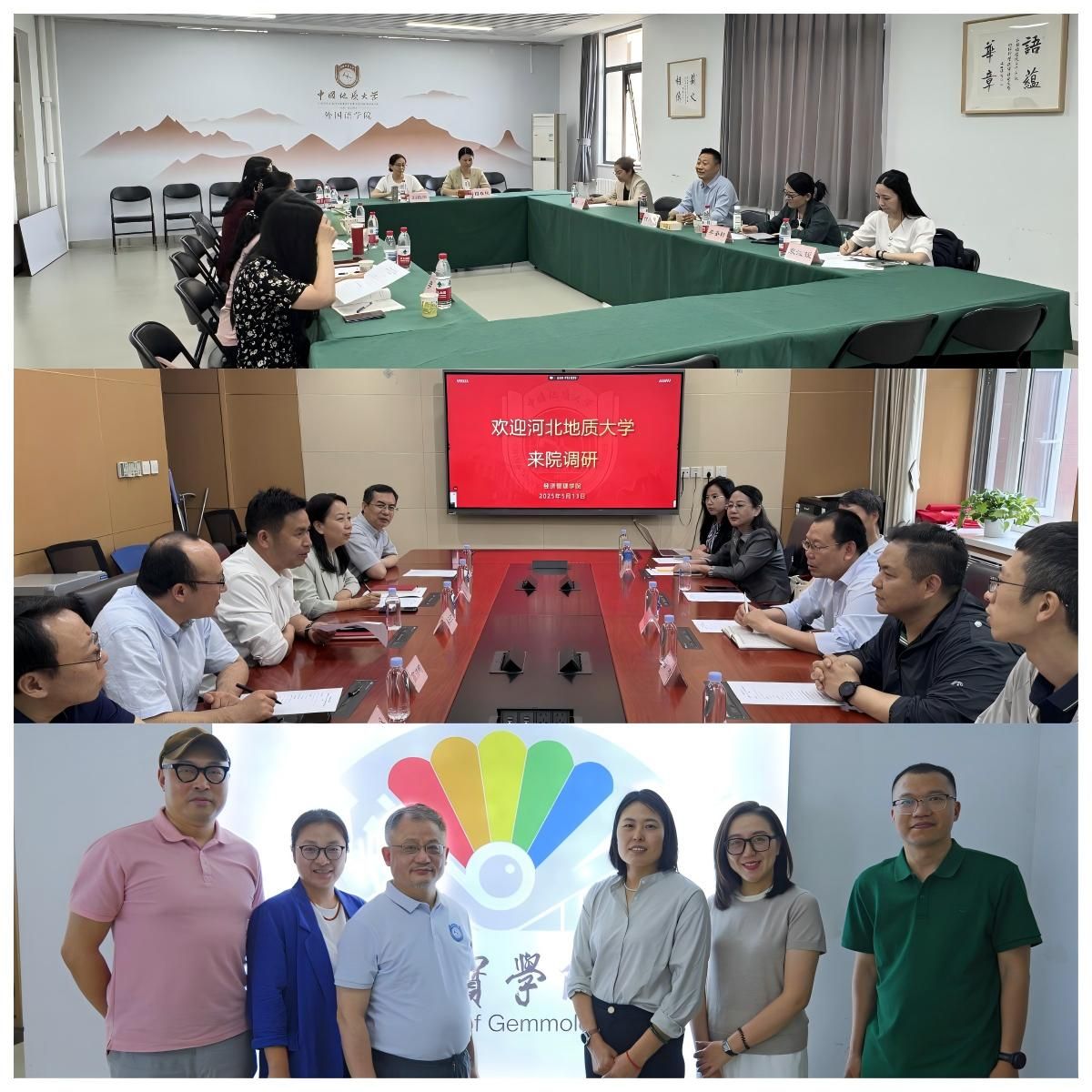 管理学院、法政学院、经济学院、宝石与材料学院、信息工程学院、宝石与材料学院、语言学院领导、学科专业代表分别与中国地质大学(北京)对应相关学院进行深入调研交流。