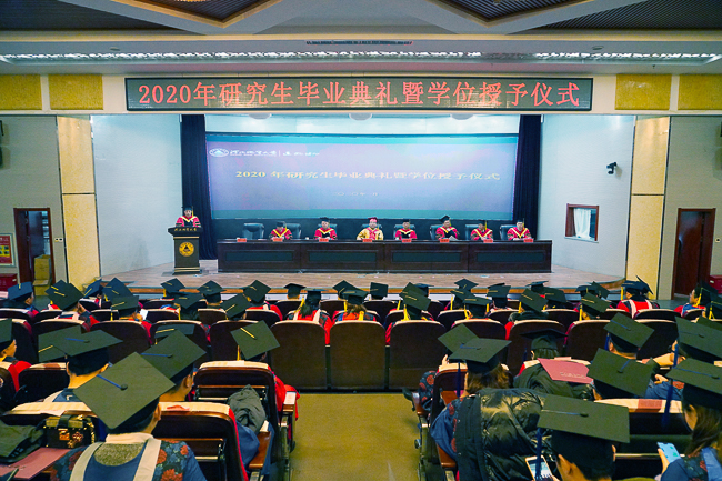 1月5日,我校2020年研究生毕业典礼暨学位授予仪式在春秋讲堂隆重举行。校领导、校学位评定委员会全体委员、研究生指导教师、2020年毕业研究生和部分毕业研究生亲友参加了典礼。典礼由副校长闫军印主持。