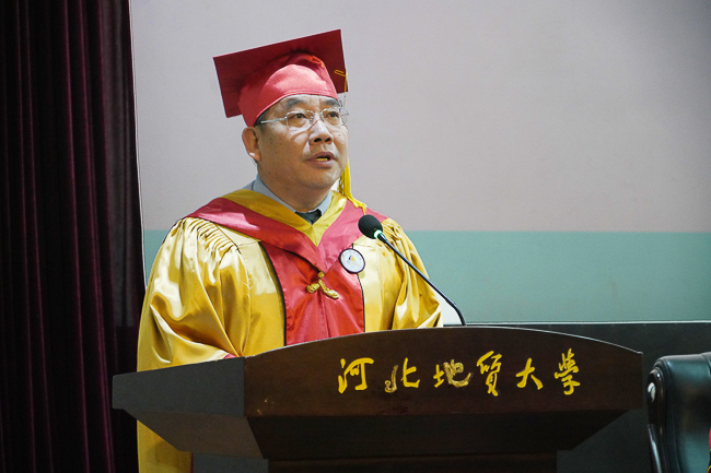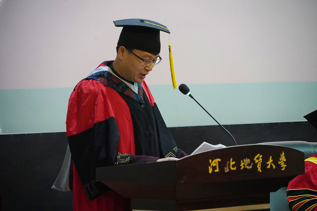 研究生导师代表、资源学院王青春老师饱含深情地祝福并寄语毕业生,要怀着一颗感恩之心,在新的岗位上、在新的梦想里,做好准备,大展宏图。他希望同学们爱国,敬业,奋进,前行,成为河北地质大学优良校风的传播者,成为社会的中流砥柱!