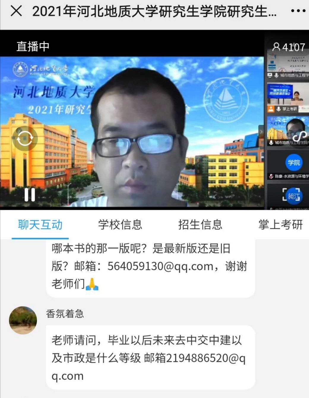 每位老师介绍结束后,考生对考研中自己最关心的问题进行了提问,老师们针对问题进行了耐心、细致的讲解,对于因时间限制无法线上回答的问题,研究生学院会于线下通过邮箱形式一一进行回复,让考生和家长深入地了解我校、各培养单位及各专业情况。
